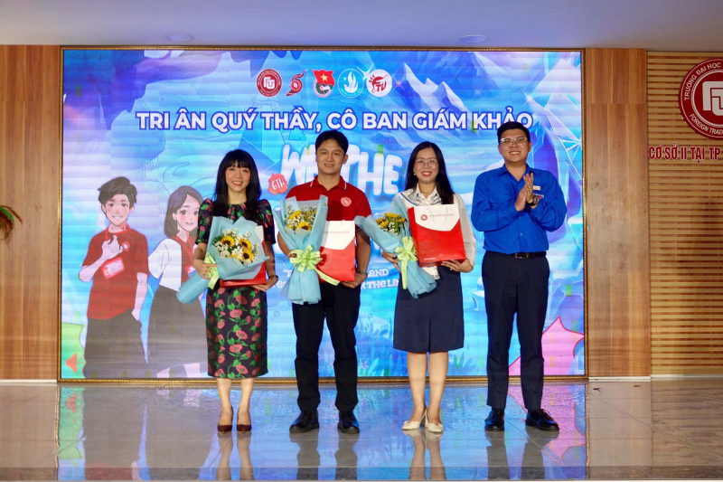 TS Lê Giang Nam – Trưởng Ban TT&QHĐN, ThS Lê Thị Hồng Diệp – Phó Trưởng Ban QLĐT, TS Lý Ngọc Yến Nhi - Giảng viên Bộ môn Khoa học Cơ bản đảm nhận vai trò Ban Giám khảo trong Vòng Chung kết “We, The Icebreakers” năm 2025 (Dr. Le Giang Nam – Head of Communications and External Relations Department, Master Le Thi Hong Diep – Deputy Head of the Academic Affairs Management Department, and Dr. Ly Ngoc Yen Nhi – Lecturer of the Department of Fundamental Sciences, served as judges at the Final Round of “We, The Icebreakers” 2025.)
