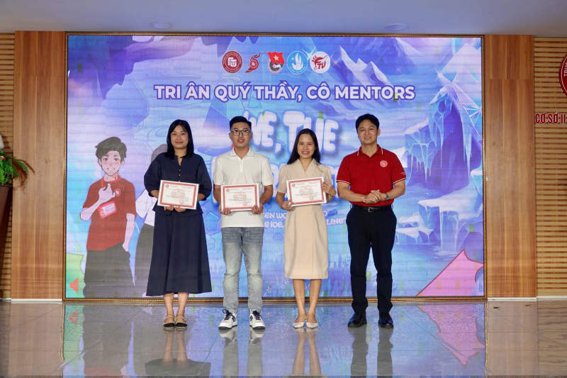 TS. Lê Giang Nam – Trưởng Ban Truyền thông và Quan hệ Đối ngoại, đại diện Ban Tổ chức, trao Giấy Chứng nhận và gửi lời tri ân đến Quý Thầy, Cô đã đồng hành với vai trò Mentor trong hành trình “We, The Icebreakers” năm 2025 (Dr. Le Giang Nam – Head of Communications and External Relations, on behalf of the Organizing Committee, presents Certificates of Appreciation to the esteemed Mentors for their dedicated guidance throughout “We, The Icebreakers” 2025.)
