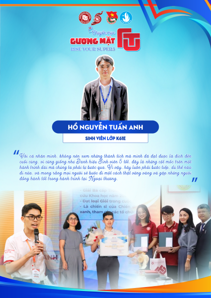 34Đồng chí Hồ Nguyễn Tuấn Anh - Sinh viên lớp K61E - Ngành đào tạo Kinh tế - Đối ngoại, Trường Đại học Ngoại Thương Cơ sở II tại TP. HCM. Tuấn Anh luôn giữ cho mình tinh thần nỗ lực và thái độ nghiêm túc trong học tập, rèn luyện và cống hiến. Với Anh, những phẩm chất quan trọng nhất mà một người trẻ cần có chính là sự chủ động, kỷ luật và tinh thần cầu tiến – những giá trị đã giúp Anh trưởng thành trong suốt hành trình đại học.