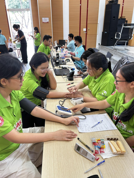 Nhiều tuần trước khi chương trình diễn ra, Đội Công tác Xã hội đã khởi động công tác truyền thông. Bên cạnh những bài đăng trên mạng xã hội, video kêu gọi và infographic thông tin, Đội còn dựng booth truyền thông ngay trước hội trường trung tâm của trường. Booth được trang trí bằng poster trực quan, bảng mini giải thích quy trình hiến máu, những điều cần chuẩn bị trước – sau hiến, cùng khu vực đăng ký tại chỗ. Tình nguyện viên luôn túc trực xuyên suốt để tư vấn tận tình giải thích quy trình hiến máu từng bước, trấn an những bạn lần đầu còn lo lắng, gợi ý chế độ ăn uống trước hiến, hỗ trợ đăng ký khung giờ để tránh ùn tắc.