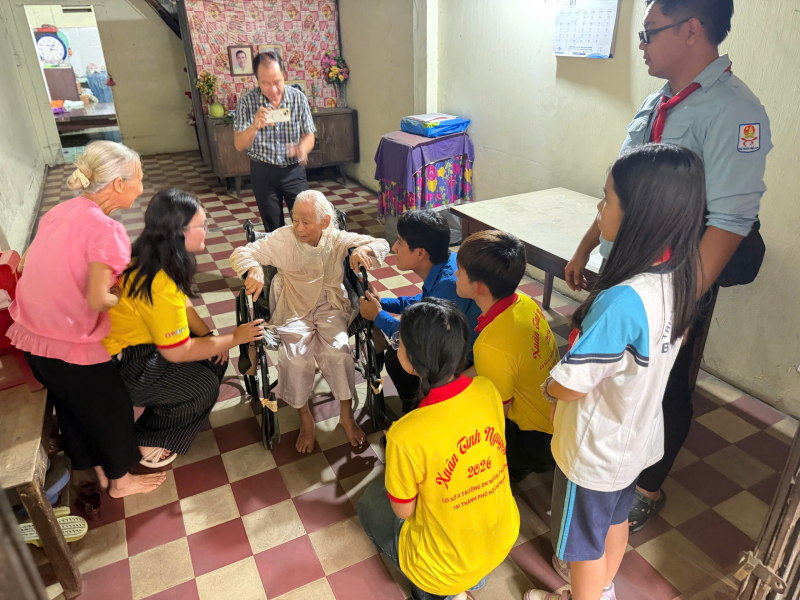 Trong suốt hành trình, Tuổi trẻ Ngoại thương đã trực tiếp đến từng gia đình, ân cần thăm hỏi sức khỏe, đời sống sinh hoạt và lắng nghe những câu chuyện gắn liền với ký ức một thời chiến tranh. Những lời kể mộc mạc, chân thành không chỉ giúp thế hệ trẻ hiểu rõ hơn về những năm tháng gian khó mà còn khơi dậy niềm trân quý giá trị của hòa bình, cảm nhận sâu sắc sự hy sinh thầm lặng của các thế hệ đi trước. Các phần quà được trao gửi là lời động viên tinh thần, đồng thời thể hiện sự trân trọng và biết ơn trước những cống hiến bền bỉ của các bác, các chú cựu chiến binh.