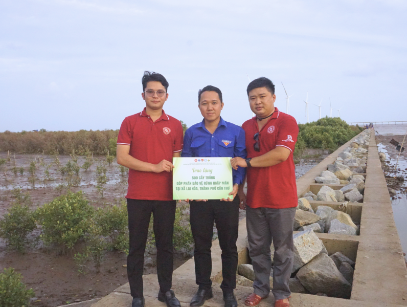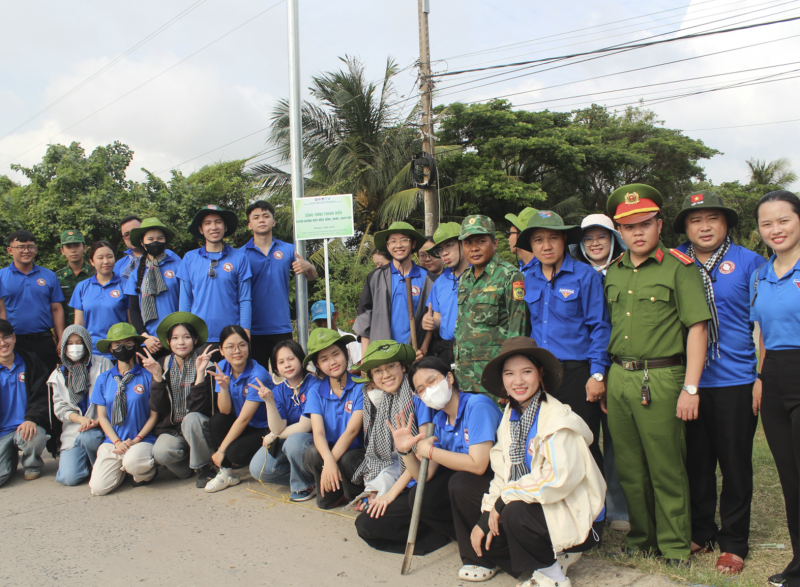 Ban Chỉ huy cùng các chiến sĩ Chiến dịch Mùa hè xanh 2025 thực hiện hoạt động trao tặng 500 cây trồng góp phần bảo vệ rừng ngập mặn tại xã Lai Hòa, thành phố Cần Thơ
