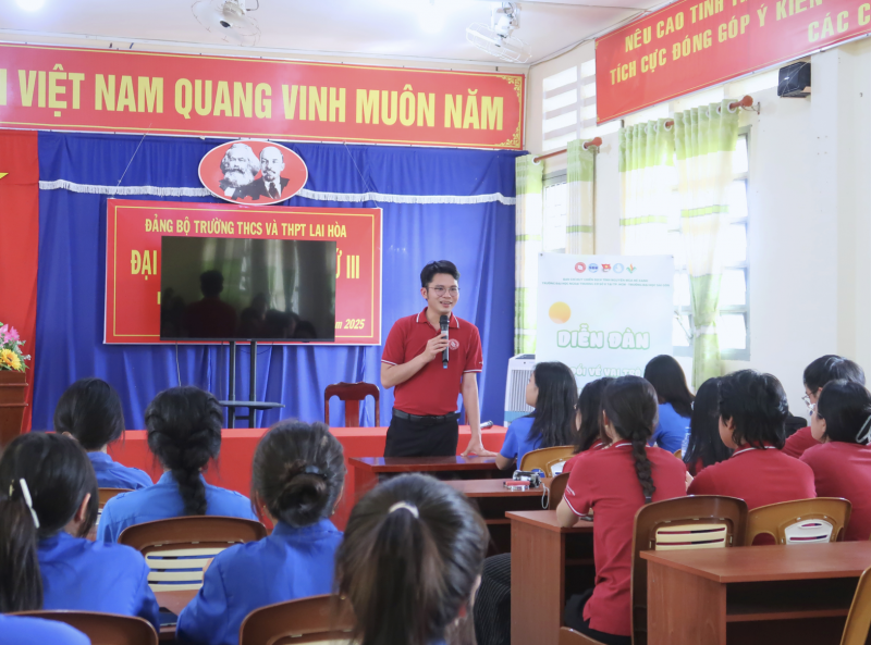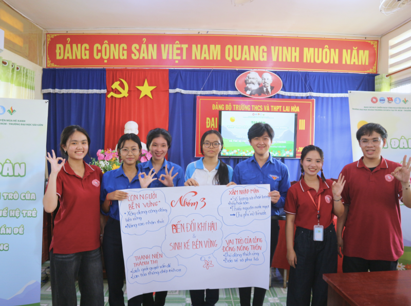 Tiếp nối là diễn đàn thảo luận xoay quanh các vấn đề về biến đổi khí hậu, ô nhiễm môi trường, xâm nhập mặn và vai trò của thanh niên trong việc bảo vệ môi trường sống. Tại đây, các bạn đã cùng nhau chia sẻ quan điểm, sáng kiến và cam kết hành động vì một tương lai xanh, bền vững.