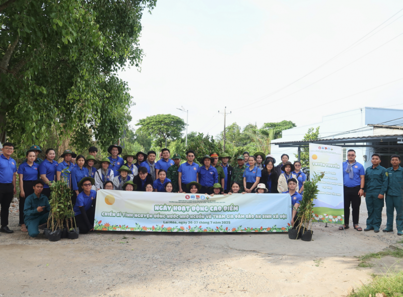 Các Chiến sĩ Mùa hè xanh 2025 tích cực trồng cây tại xã Lai Hòa, góp phần bảo vệ môi trường sinh thái và ứng phó với biến đổi khí hậu