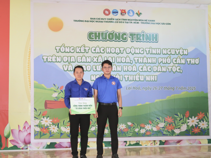 Trong hai ngày 26 và 27 tháng 7 năm 2025, những “gót xanh” tình nguyện của Trường Đại học Ngoại thương Cơ sở II tại TP. Hồ Chí Minh đã để lại nhiều dấu ấn sâu sắc tại xã Lai Hòa, TP. Cần Thơ thông qua chuỗi hoạt động thiết thực, mang ý nghĩa tri ân, chia sẻ và kết nối cộng đồng.