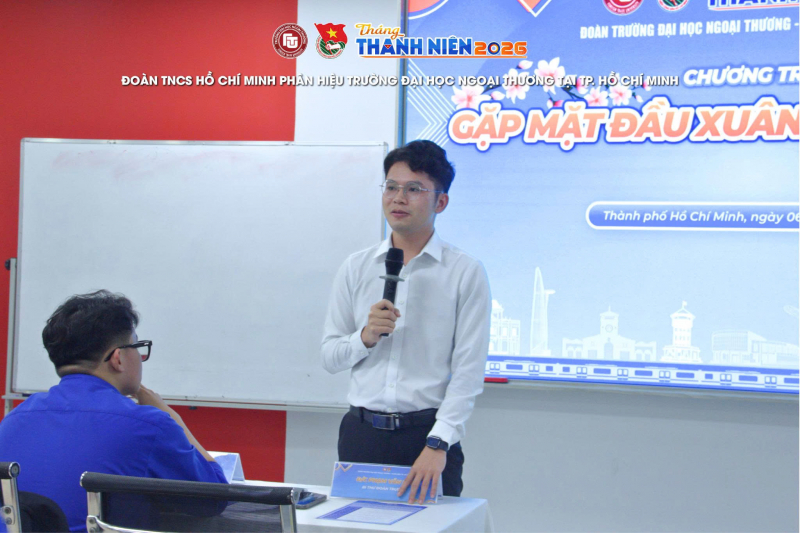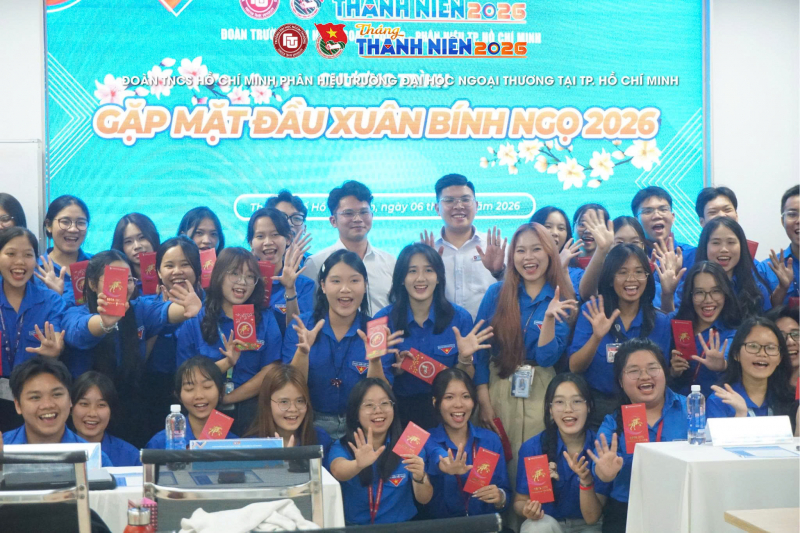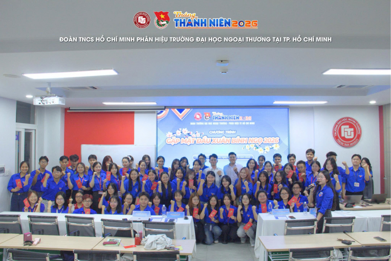105Trong không khí hân hoan, ấm áp của những ngày đầu xuân Bính Ngọ, tối ngày 06/3/2026, Đoàn Thanh niên Trường Đại học Ngoại thương – Phân hiệu tại TP. Hồ Chí Minh đã tổ chức Chương trình Họp mặt đầu xuân Bính Ngọ năm 2026. Chương trình được tổ chức nhằm tạo không gian gặp gỡ, giao lưu, kết nối giữa các thế hệ cán bộ Đoàn tại Phân hiệu, đồng thời động viên, khích lệ tinh thần học tập, rèn luyện và tiếp thêm động lực cho đội ngũ cán bộ Đoàn triển khai hiệu quả các nhiệm vụ công tác Đoàn trong năm 2026.