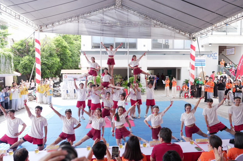 Hoạt động đồng diễn Flashmob - Cheerleading với sự tham gia của đông đảo sinh viên các khóa đã mang đến không khí náo nhiệt và sự hồi hộp với những màn đồng diễn, tung hứng đầy nghệ thuật. Đặc biệt, phần đồng diễn sinh viên đã khuấy động sân trường bằng những bước nhảy điêu luyện, thể hiện sự kỹ thuật và sức sống tuổi trẻ.