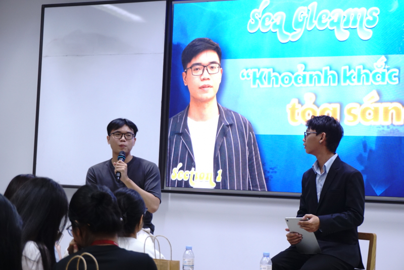 Lấy hình ảnh biển cả làm biểu tượng cho hành trình học tập rộng mở, Small Talk được triển khai với hai phiên chia sẻ tương ứng với hai “mốc hành trình”. Ở phiên thứ nhất với chủ đề “Sea Gleams”, sinh viên được lắng nghe những câu chuyện chân thật về những ngày đầu bước chân vào đại học – từ những bất ngờ và bỡ ngỡ, đến những khoảnh khắc giúp mỗi người nhận ra giá trị riêng của bản thân. Thông qua lời kể của các diễn giả, tân sinh viên có thêm điểm tựa để soi chiếu bản thân, tìm kiếm “ánh sáng dẫn lối” và xây dựng sự tự tin trong hành trình phía trước.