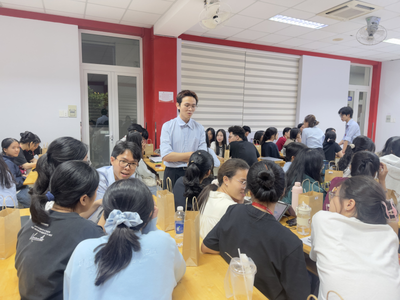 Bên cạnh phần chia sẻ chính, Small Talk còn tạo ra một không gian giao lưu mở, nơi sinh viên đặt câu hỏi về ngành học, cơ hội thực tập, định hướng nghề nghiệp và cách xây dựng hồ sơ năng lực ngay từ năm nhất. Các trao đổi diễn ra trong không khí gần gũi, chân thành và khích lệ, giúp tân sinh viên giải tỏa những băn khoăn thường gặp trong giai đoạn đầu đại học, đồng thời nhìn nhận rõ hơn về những kỹ năng cần được rèn luyện trong bối cảnh thị trường logistics đang phát triển nhanh chóng.