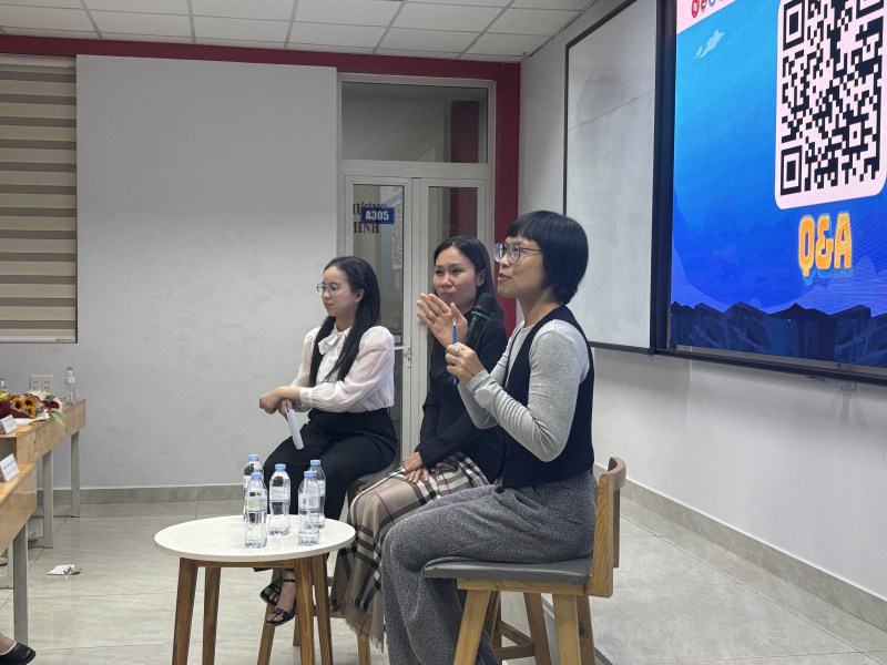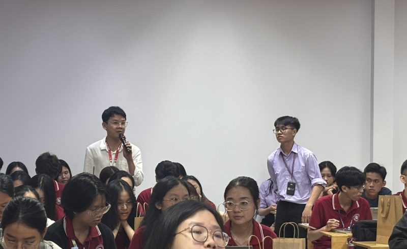 Không khí trao đổi sôi nổi trong phần hỏi – đáp giữa sinh viên và diễn giả