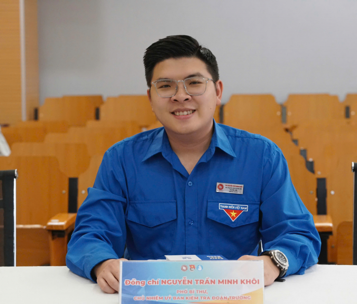 Đồng chí Nguyễn Trần Minh Khôi – Phó Bí thư, chủ nhiệm Ủy ban Kiểm tra Đoàn trường báo cáo công tác truyền thông 06 tháng