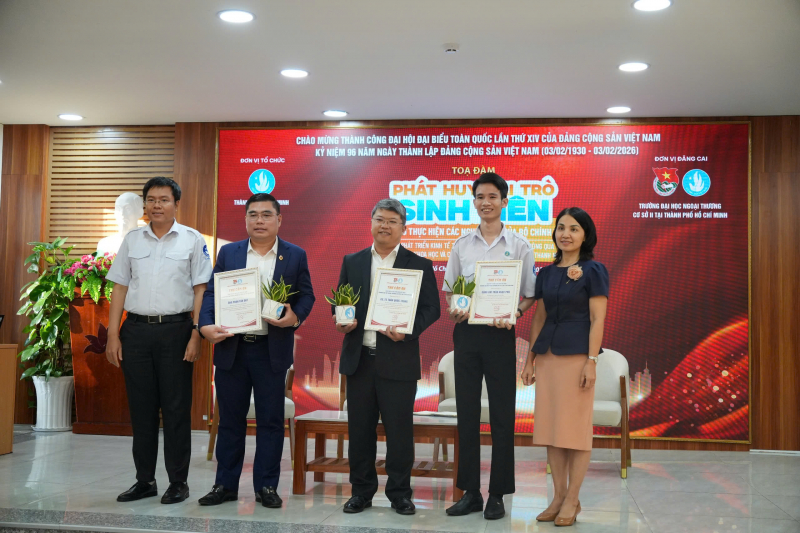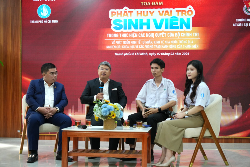 Tọa đàm khép lại với phần đối thoại trực tiếp giữa khách mời và sinh viên xoay quanh các chủ đề: tư duy – định hướng học tập, kinh tế nhà nước – kinh tế tư nhân, nghiên cứu khoa học gắn với thực tiễn. Những câu hỏi thẳng thắn, giàu chiều sâu thể hiện sự quan tâm, trách nhiệm và khát vọng đóng góp của thế hệ sinh viên Thành phố Hồ Chí Minh.