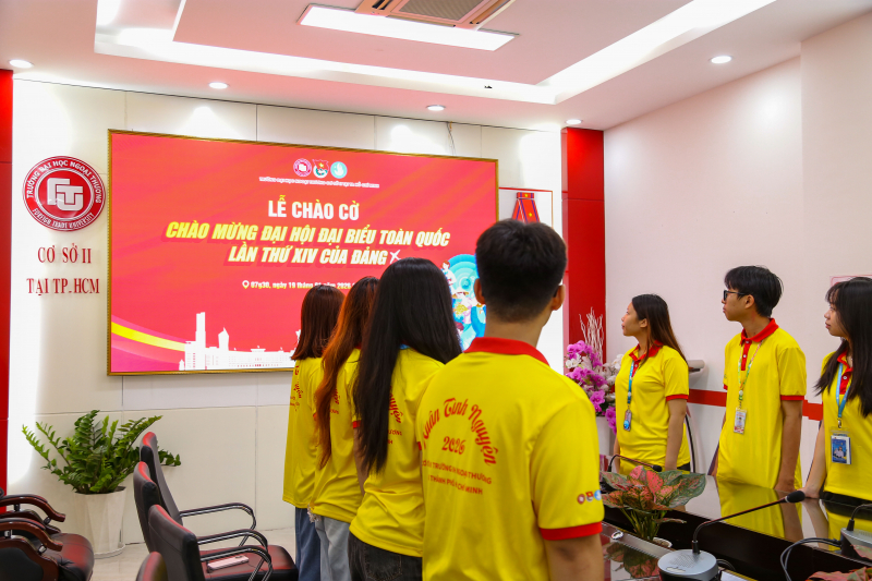 14Sáng ngày 19/01/2026, tại Phòng A103, Tuổi trẻ Ngoại thương Cơ sở II tại TP. Hồ Chí Minh đã long trọng tổ chức Hoạt động chào cờ chào mừng Đại hội đại biểu toàn quốc lần thứ XIV của Đảng Cộng sản Việt Nam. Đây là hoạt động chính trị – giáo dục có ý nghĩa sâu sắc, thể hiện tình cảm, niềm tin và sự hướng về Đại hội XIV của cán bộ Đoàn, đoàn viên, thanh niên, sinh viên Nhà trường.