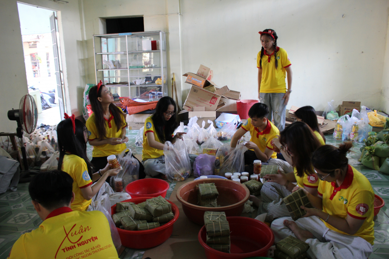 Từ tháng 11/2025, chương trình đã được chuẩn bị kỹ lưỡng thông qua các hoạt động khảo sát địa bàn, xây dựng kế hoạch, vận động nguồn lực xã hội và gây quỹ. Mọi công tác chuẩn bị được thực hiện chu đáo nhằm đảm bảo chương trình diễn ra thiết thực, hiệu quả và mang lại giá trị bền vững cho địa phương. Ngày 31/01/2026, các tình nguyện viên triển khai công tác chuẩn bị như dọn dẹp khuôn viên trường, trang trí lớp học, gói bánh chưng và chuẩn bị các phần quà Tết. Đây không chỉ là hoạt động hậu cần mà còn là dịp để các bạn sinh viên cùng nhau tạo dựng không khí Xuân đậm đà bản sắc truyền thống.
